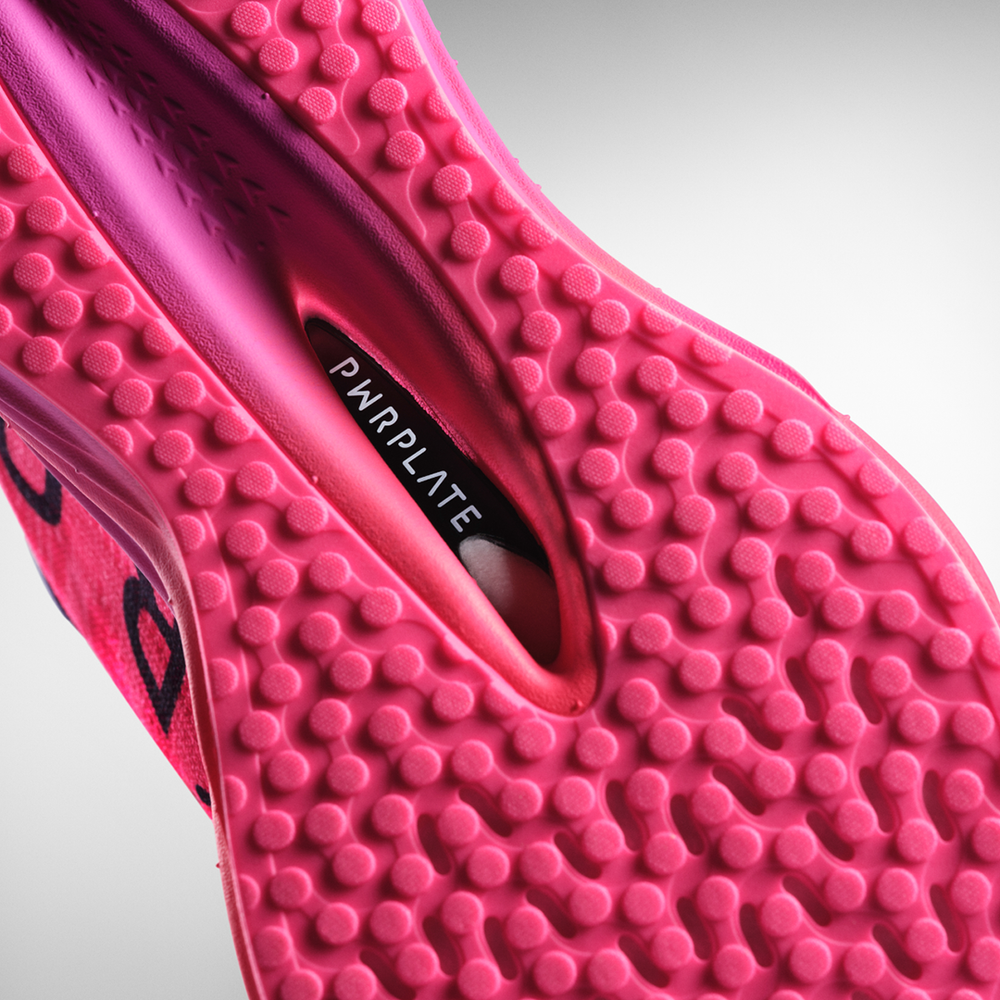 Full-length carbon fiber PWRPLATE with an updated shape and flexibility delivers a more consistent and supportive ride throughout the race.